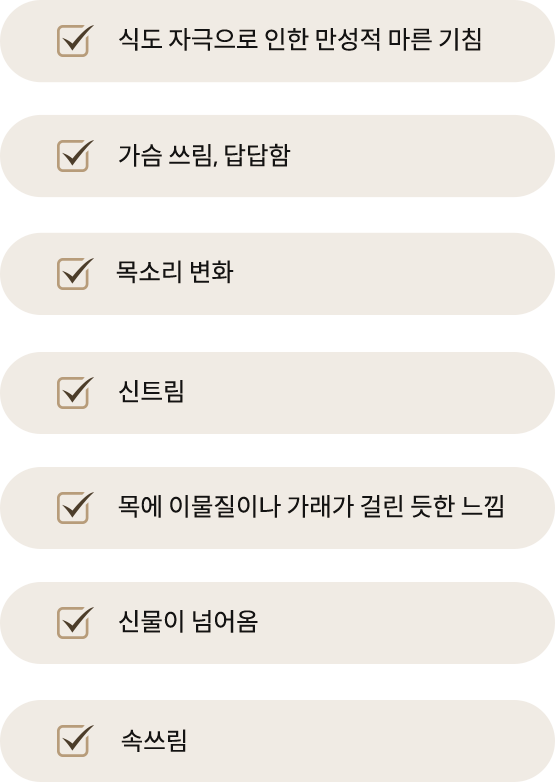 역류성 식도염은 현대인들이 흔히 겪는 질환 중 하나로, 위산이 식도로 역류하여 발생하는 염증성 질환입니다. 흔히 가슴 쓰림, 목의 이물감, 만성적인 기침 등의 증상을 동반하며, 삶의 질을 크게 저하시킬 수 있습니다. 일반적으로 불규칙한 식사, 스트레스, 카페인 섭취 등이 원인으로 꼽히며 장기간 방치할 경우 식도와 위장관의 점막이 지속적으로 손상되어 위축성 위염이나 장상피 화생(위암의 전 단계)으로 발전할 수 있습니다. 위산분비를 줄이는 약은 소화력을 약화시키고 위장관 세균 감염을 늘리며 재발의 위험이 큽니다. 따라서 역류성 식도염에 대한 처방은 임시적인 대증처방보다는 한방을 통한 근본적인 치료가 중요합니다.