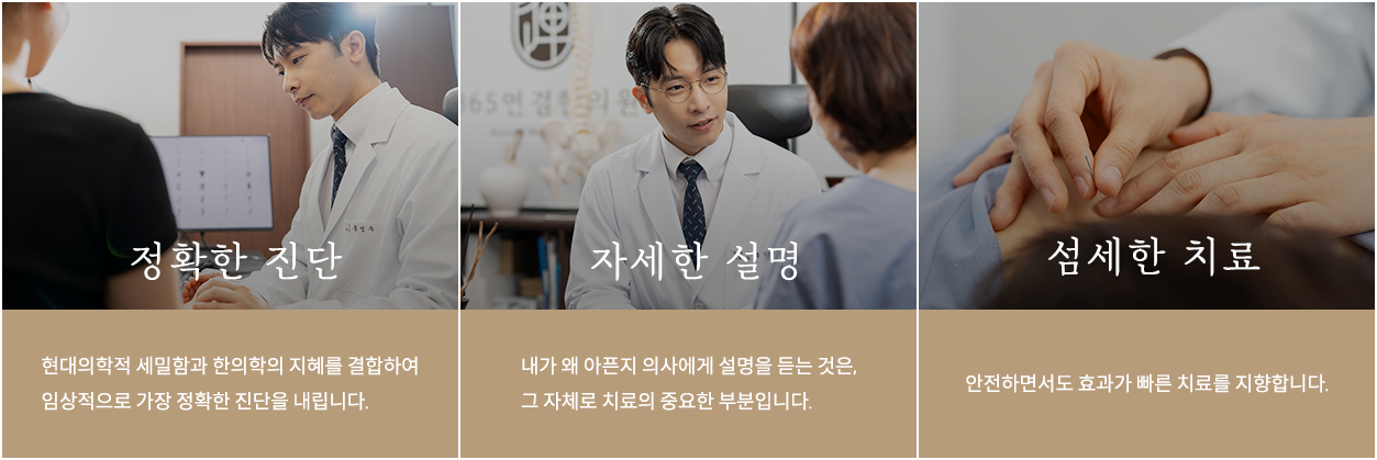 '원장님, 남들하는만큼 일하고 쉬는데 제 몸은 왜 이렇게 아플까요?' 해답을 찾기 위해 밤낮없이 연구하고 또 고민했습니다. 긴 시간 한의학에 몸담으며 제가 내린 결론은 '우리 몸의 모든 부위는 서로 연결되어 있다‘는 것입니다.